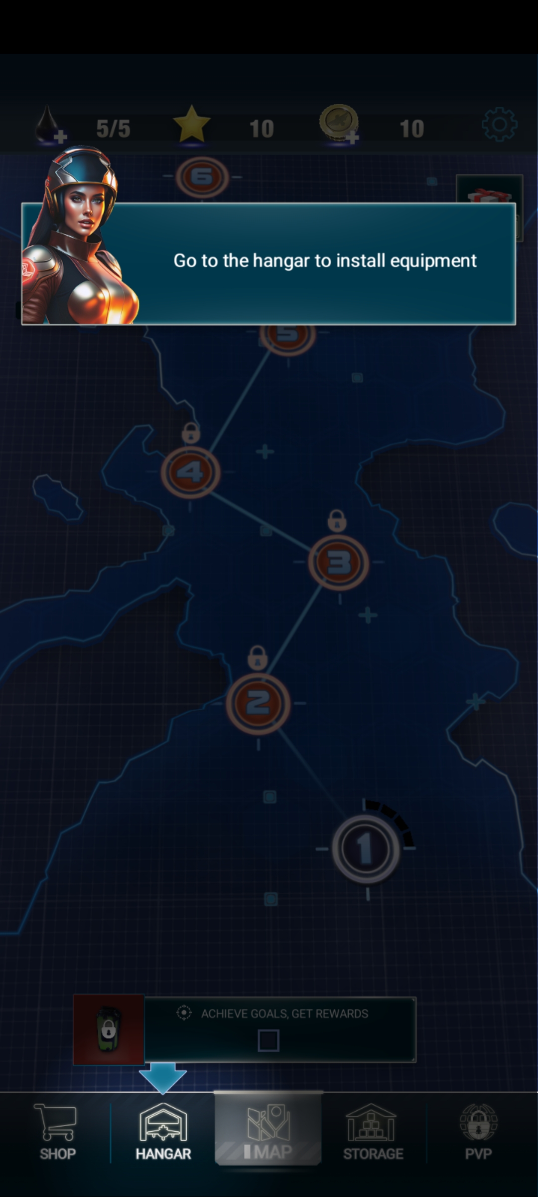 1、进入银河集团198.net最新版本游戏后,打开【hangar】飞机库,前往机库安装设备